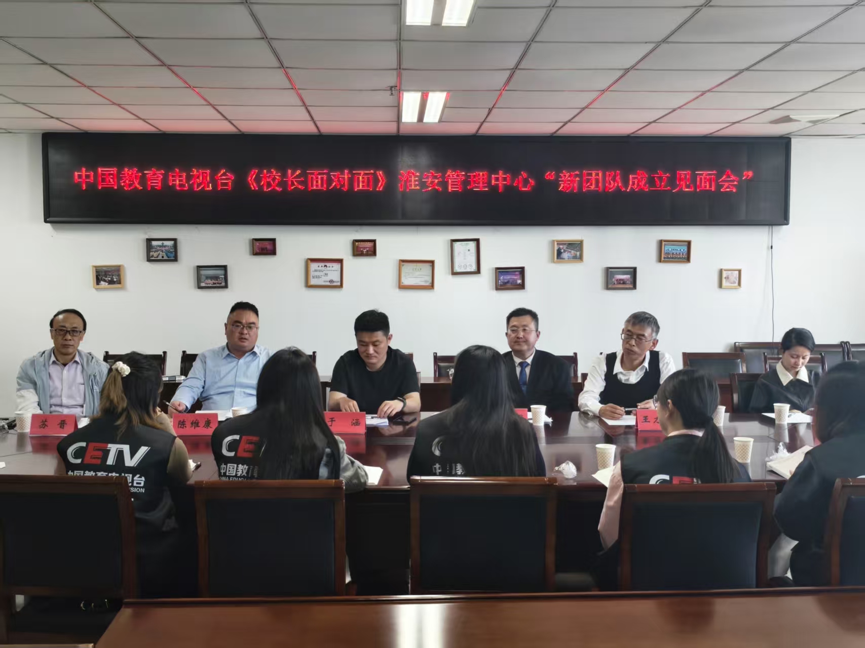 近日,由中国教育电视台《校长面对面》栏目组和淮阴师范学院新传学院联合组建的栏目组“淮安管理中心”新团队成立见面会在淮阴师范学院举行。中国教育电视台江苏省办事处主任张辉、淮安管理中心主任苏晋,淮安市委党校培训处处长王力飞,淮师新传学院广播电视编导系主任于涵及新团队全体成员参会,标志着双方产教融合合作迈入实质性推进阶段。